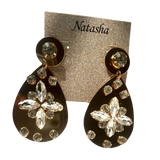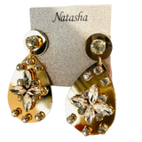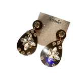Add a touch of elegance to your jewelry collection with these exquisite gold crystal drop earrings. Featuring a stunning teardrop design adorned with sparkling crystals, the centerpiece showcases a delicate floral pattern that radiates sophistication. Perfect for special occasions or elevating everyday outfits, these earrings are a timeless addition to any wardrobe. Lightweight and comfortable to wear, they are sure to draw compliments wherever you go.